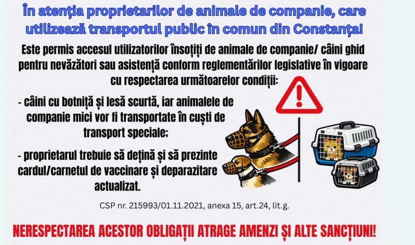 Reguli pentru transportul animalelor de companie în Constanța. Ce obligații au stăpânii care circulă cu autobuzele
