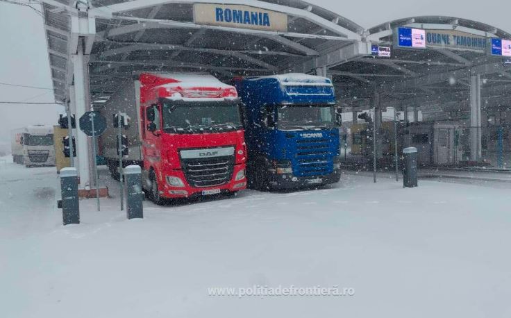 Polițiștii de frontieră români informează transportatorii aflați în trafic despre situația existentă și recomandă reconfigurarea traseelor, precum și consultarea permanentă a informărilor oficiale înainte de deplasare.