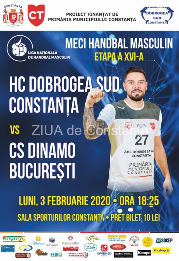 Sala Sporturilor din Constanța va găzdui luni, 03 februarie 2020, începând cu ora 18:25, meciul de handbal dintre HC Dobrogea Sud Constanța și CS Dinamo București, în cadrul Ligii Naționale de Handbal.