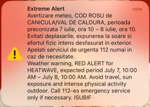 Restricțiile de circulație pe perioada codului roșu de caniculă vor fi impuse în continuare luni, 15 iulie și marți, 16 iulie 2024. Aceste restricții survin ca urmare a avertizării meteorologice a ANM conform căreia temperaturile vor ajunge în cele două zile până la valori de 42 de grade Celsius.Potrivit CNAIR, în perioada 15 - 16 iulie, între orele 11.00 și 19.00, autovehiculele cu masa maximă autorizată mai mare de 12 tone, nu vor putea circula pe sectoarele de autostrăzi, drumuri expres și drumuri naționale aflate în administrarea următoarelor Direcții Regionale: