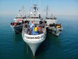 Comandorul Sebastian BAROTE a preluat comanda grupării de la comandorul Fotios PARASKEVAS, iar pentru următoarele șase luni pavilionul NATO va fi arborat la bordul puitorului de mine si plase 274 „Viceamiral Constantin Bălescu".
