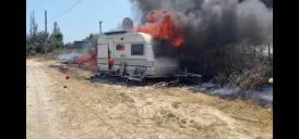 Rulotă mistuită de flăcări la ieșire din Hârșova, județul Constanța