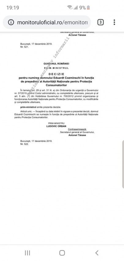 S-a publicat în Monitor: Eduardt Cozminschi, noul președinte al Autorității Naționale pentru Protecția Consumatorilor