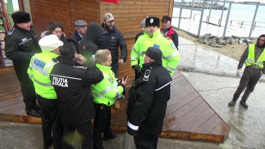 Scandal la Mangalia în timpul demolării unui bar de pe faleză. Polițiștii Locali înjurați și agresați