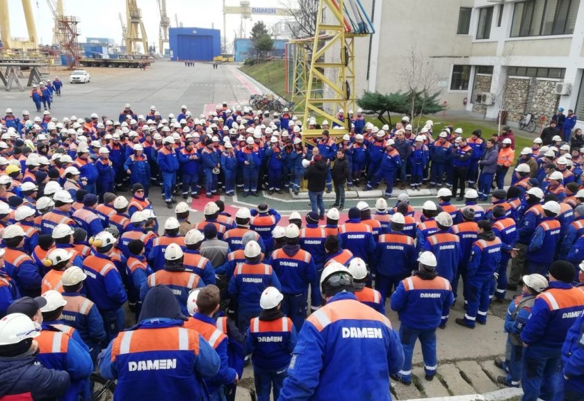 Sindicatul Liber Navalistul protestează la Mangalia după ce Tribunalulul Constanța a dispus intrarea în faliment a societății Damen Shipyards Mangalia S.A.