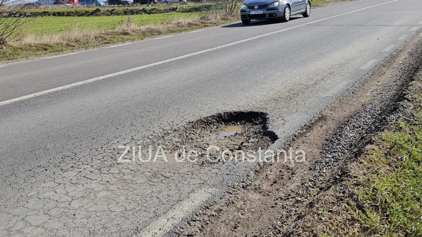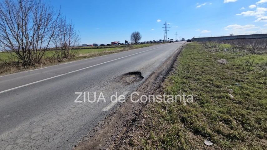 Știri Constanța: FOTO+VIDEO. DN 3C, la intrarea în Constanța dinspre Ovidiu, gropi periculoase pe drumul de