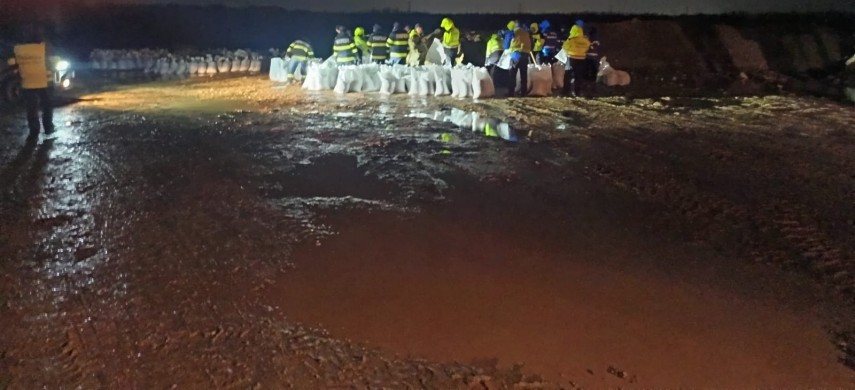 În această dimineață, intervenția a fost extinsă cu încă 200 m de panouri mobile, aduse pentru consolidarea apărării.
