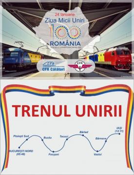 Vineri, 24 ianuarie 2025, angajații feroviari din toată țara, alături de toți românii, sărbătoresc 166 de ani de la Unirea Principatelor Române sub conducerea lui Alexandru Ioan Cuza, primul pas spre înfăptuirea statului național unitar român.CFR Călători va numi simbolic „Trenul Unirii” – trenurile IR 1661/IR 1664 care duc mesajul național din București către Iași și retur.
