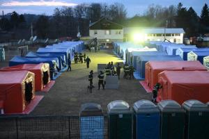 Unitatea mobilă, formată din 30 de corturi, este pregătită să asigure cazarea temporară a cetățenilor sosiți din zona de conflict.