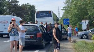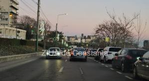 Trafic aglomerat pe DN39 Constanța-Mangalia în stațiunea Eforie Nord, în direcția către litoral