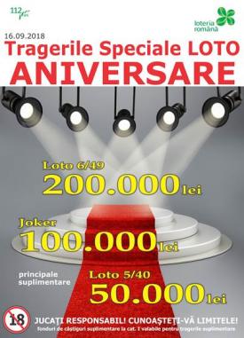Cu aceasta ocazie, Loteria Română organizează duminică, 14 septembrie, Tragerile Speciale Loto Aniversare.