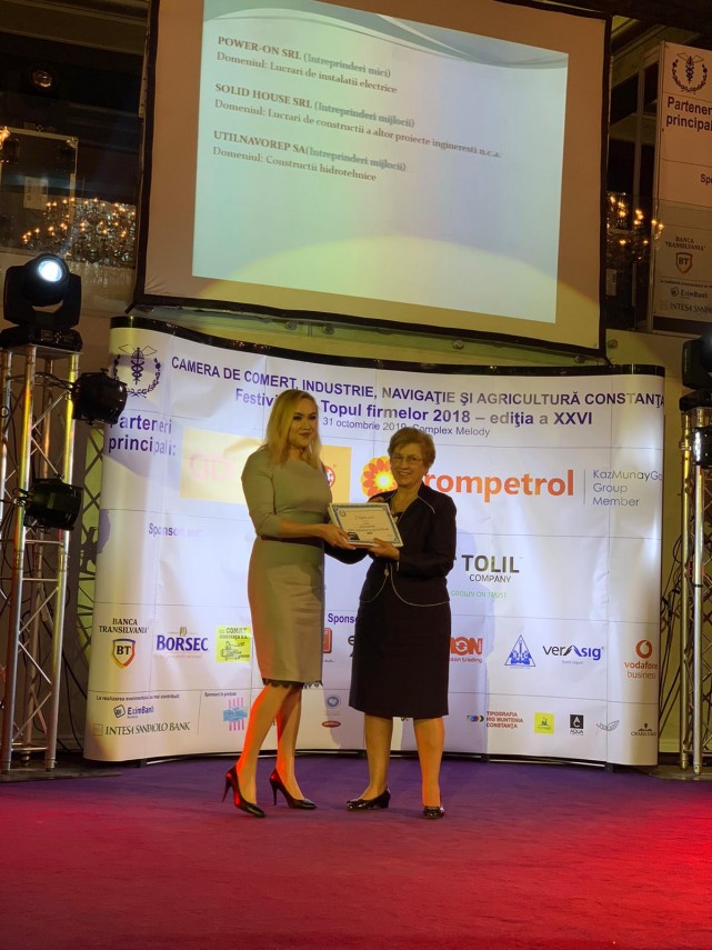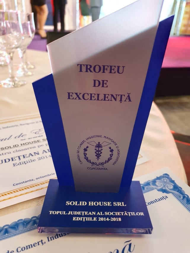 Trofeu de excelenţă acordat de CCINA Dezvoltatorul imobiliar Solid House SRL, locul I în „Topul firmelor din judeţul Constanţa 2018“ (galerie foto)
