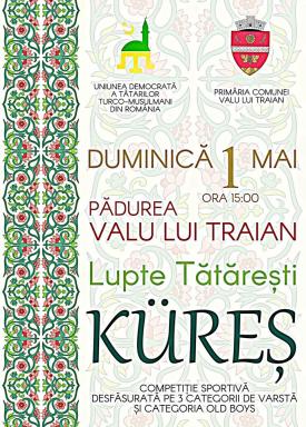 Uniunea Democrată a Tătarilor Turco – Musulmani din România organizează sâmbătă, 9 septembrie, „Turneul Campionilor la Kureș - 2023”, eveniment organizat cu sprijinul Consiliului Județean Constanța. Competiția care va avea loc începând cu ora 16.00, în Parcul Tăbăcăriei – Constanța (perimetrul din spatele Restaurantului Zodiac), va marca încheierea sezonului de kureș al anului 2023.Potrivit UDTTMR, competiția se va desfășura pe două categorii.