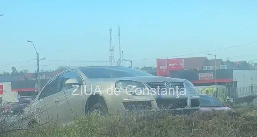 Un șofer a urcat cu mașina pe sensul giratoriu de la Agigea (GALERIE FOTO+VIDEO)