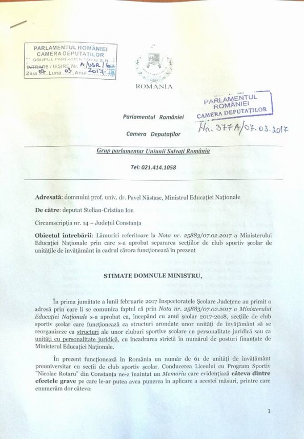 UPDATE. „Vor ajunge «sinistrați» în propriul oraș“ Unde se vor antrena sportivii de la LPS "Nicolae Rotaru" Constanţa? Măsuri luate de Ministerul Educaţiei (documente)