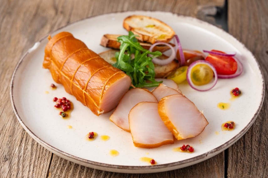 Tradiție și gust: Un proces riguros de fabricare ce include sărarea cu amestec de sare gemă și zahăr, zvântarea controlată și afumarea cu lemn de esență tare. Rezultatul? Un gust rafinat, asemănător cărnii de pasăre, și o textură delicată, dar fermă.
