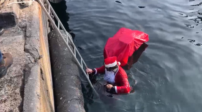 VIDEO Moș Crăciun a ajuns la Constanța din valurile Mării Negre