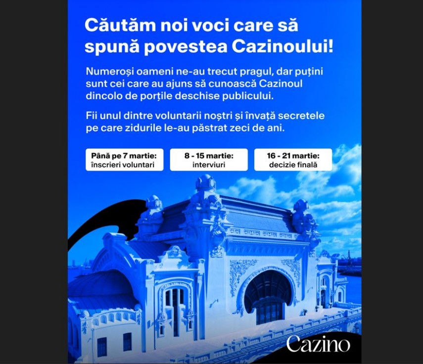 Cazinoul Constanța anunță că dă startul perioadei de înscriere pentru recrutarea de voluntari.