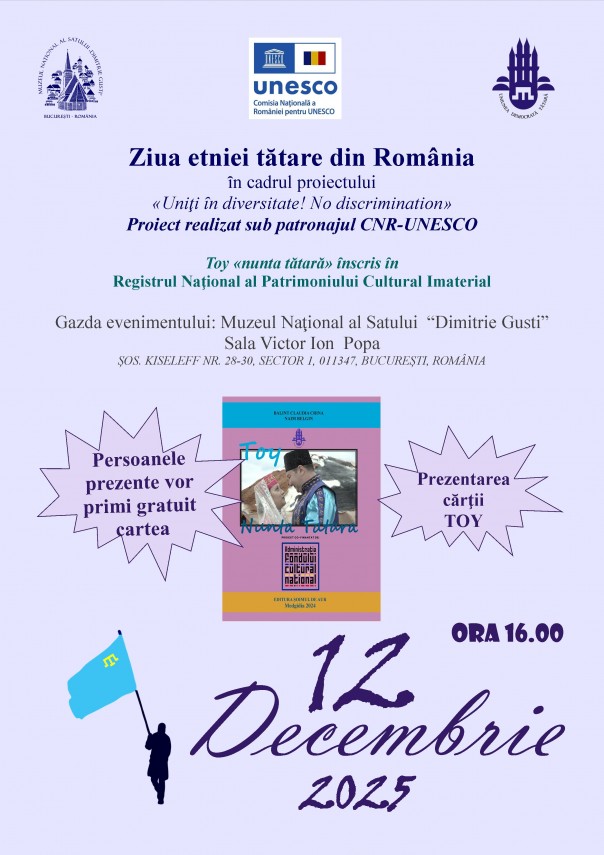 Uniunea Democrată Tătară (UDT), în parteneriat cu Muzeul Naţional al Satului “Dimitrie Gusti”, organizează „Ziua Etniei Tătare din România” în cadrul proiectului „Uniți în Diversitate! No Discrimination” realizat sub patronajul CNR-UNESCO.