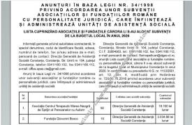 Ce asociaţii şi fundaţii, care acordă servicii de asistenţă socială în municipiul Constanţa, vor primi