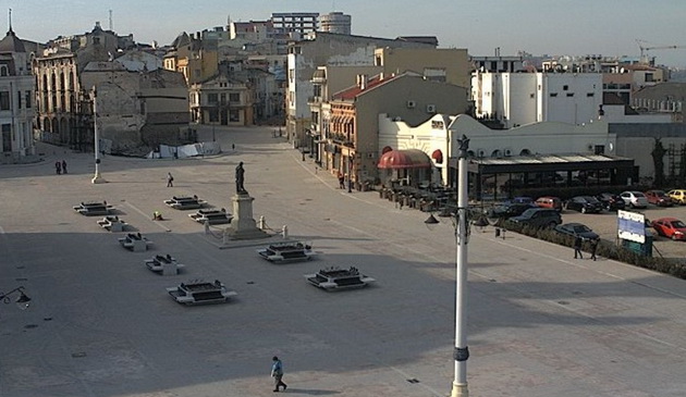 Două mări faţă în faţă. Una Neagră, alta... de beton. Din mijlocul celei de-a doua - din centrul Pieţei Ovidiu -, priveşte de secole spre Pontul Euxin statuia poetului tristelor şi ponticelor. Însă, la rându-i, văzută de sus, Piaţa Ovidiu nu este la fel de atrăgătoare precum alte agore publice din România; deşi ar trebui să aibă toate atuurile pentru a fi un loc invidiat de locuitorii din restul ţării. Cel puţin utilizatorii care intră pe site-ul Jurnalului Naţional la secţiunea „webcam” nu sunt deloc impresionaţi de felul în care se prezintă zona veche a urbei tomitane. Deşi ar trebui să fie o poartă de intrare în Constanţa, un bun prilej prin care oamenii să fie atraşi să viziteze bătrânul Tomis, o reclamă sugestivă pentru tot ceea ce nu trebuie ratat în urbea poetului exilat Ovidiu, imaginile surprinse de camera de supraveghere nu sunt foarte atrăgătoare.„Ce piaţă ternă, nu există niciun bec/felinar? Sau astăzi nu aveţi lumină?”, spunea, dezamăgită de privelişte, Ioana Gheorghe la începutul lunii februarie. „Minunată realizare! O frumoasă zonă de relaxare şi promenadă plină de maşini şi fără niciun pic de verdeaţă şi umbră. Unde sunt palmierii lui musiu Bonduel? Dacă întreaga zonă este zonă pietonală, în scop de promenadă, vă întreb: de ce sunt făcute trotuare şi de ce sunt parcate maşini pe zona respectivă?”, se întreba, retoric, şi cetăţeanul câmpinean Sorin Bogdan, spre sfârşitul anului trecut. La întrebările posibililor turişti la Marea Neagră nu s-a găsit niciun responsabil dintre cei abilitaţi să răspundă. Tot spre sfârşitul toamnei, indignată şi dezamăgită se arăta şi buzoianca ce semnează sub pseudonimul Păpădie Escu: „Tone de beton în această piaţă... Urmăresc lucrările de la început şi tare eram curioasă câtă verdeaţă va avea noua Piaţă... Se pare că au dispărut până şi cele două parceluţe de-a dreapta şi de-a stânga marelui Ovidiu. Chiar de vor pune fântâni arteziene şi câte un petec de iarbă sub sau lângă ele, tot va fi foarte puţin pentru perimetrul distrus de betoane... Doamne, unde sunt urbaniştii de altădată?”. Adevărul este că opiniile lor sunt pertinente, însă noi, constănţenii, am trecut de atâta ori, poate nepăsători, prin aceste locuri, încât în goana noastră nu observăm cum oraşul nostru devine tot mai gri, mai tern, lipsit de viaţă. „Iată, au ajuns şi la final aceste lucrări... şi plâng de mila generaţiilor viitoare... trei petece de verdeaţă în 3 ghivece de beton, oxigen cu porţia, dar fier, mult fier, beton şi... prostie... Dar suntem comozi şi lăsăm sus toţi idioţii doar pentru că «şi-aşa părerea mea nu contează!». În tot peisajul, plantaţii de fier şi cauciuc pe pat de asfalt turnat în derâdere, miros de var ud cu iz de viitor moloz, culoare de carton de arhivă... Doar cerul mai are uneori culoarea purităţii, a speranţei, a existenţei“, spune aceeaşi Păpădie, pe care cu greu o putem contrazice.