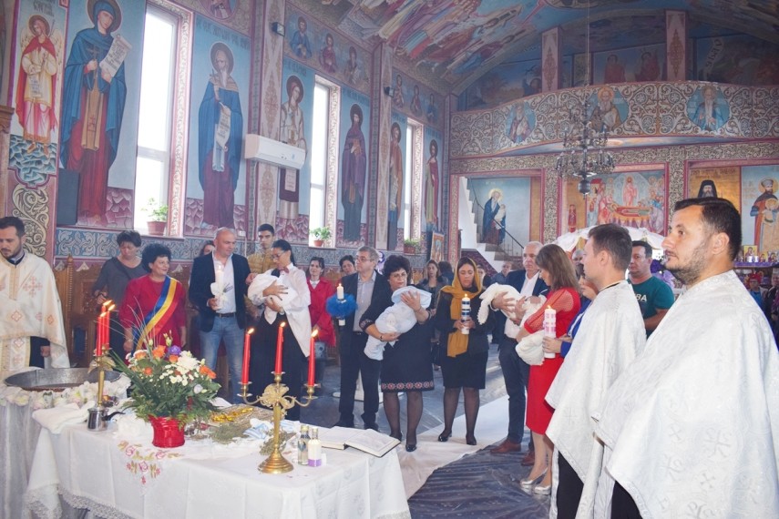 Momente emoţionante la Cumpăna! Trei băieţei şi o fetiţă din centre de asistenţă maternală au primit Taina Sfântului Botez (galerie foto)