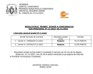 După proba scrisă niciunul dintre cei trei candidați nu a obținut punctajul minim pentru a merge mai departe, vezi secțiunea „documente”. Unul dintre candidați nu s-a mai prezentat iar un altul o fost notat cu 0 puncte. Cel de-al treilea a obținut 68,58 de puncte.