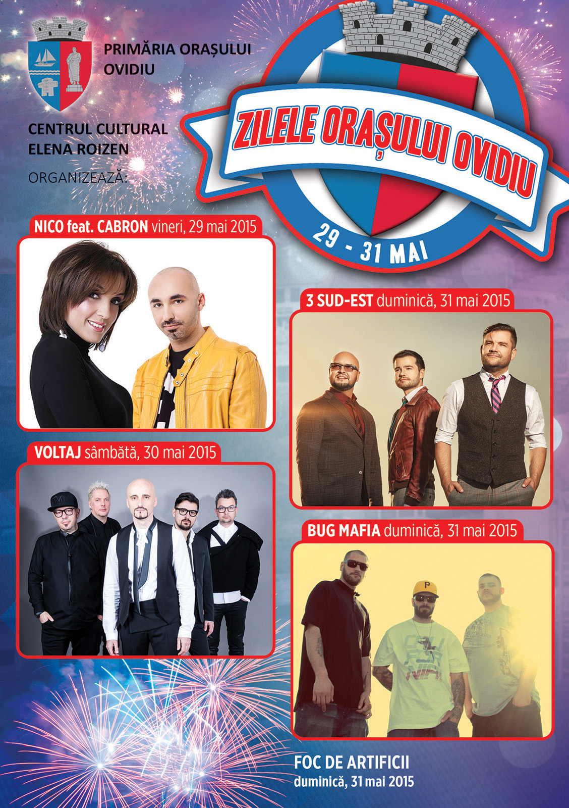 Sâmbătă, ora 11.00, este programată deschiderea oficială a recitalurilor şi spectacolelor dedicate copiilor, iar la ora 18.00, va avea loc deschiderea Festivalului Cântecului Popular „Elena Roizen“, faza de concurs, competiţie organizată de Primăria Ovidiu în colaborare cu Centrul Cultural „Elena Roizen“. Trebuie menţionat că, începând cu luna aceasta, Centrul Cultural Ovidiu va purta numele regretatei interprete de muzică populară Elena Roizen, iar îndată ce vor fi încheiate lucrările de reamenajare şi reabilitare completă a centrului cultural, va avea loc şi festivitatea de inaugurare. Seara de sâmbătă va continua cu un recital de muzică populară susţinut de interpreta de Veta Biriş. În încheiere, trupa Voltaj, reprezentanta României la Eurovision 2015, promite un concert excepţional, la care sunt invitaţi toţi locuitorii oraşului şi nu numai.Duminica, dominată de competiţii sportive