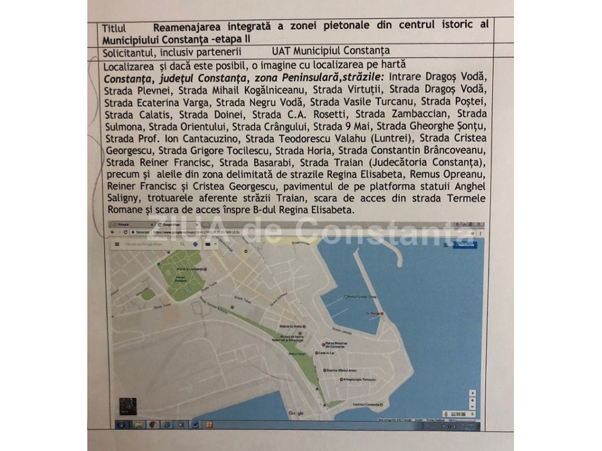 Proiectul de reamenajare a zonei pietonale din centrul istoric al Constanţei, etapa II-a, modificat de Consiliul Local Municipal. Au crescut costurile neeligibile (documente)