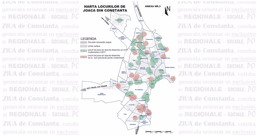 În paralel, USR şi grupul „Locuri de joacă“, format din părinţi constănţeni, s-au mobilizat pe o reţea de socializare, în încercarea de a identifica care sunt zonele din oraş unde lipsesc locurile de joacă sau unde cele existente s-au transformat în adevărate pericole pentru cei mici. Echipa „Locuri de joacă“ a întocmit o hartă a celor 39 de locuri de joacă, din cele 65 vizitate, pe care Primăria a zis că le va reface anul acesta. Din câte se vede (harta locurilor de joacă o puteţi vizualiza în secţiunea „Documente“), zona de sud a oraşului rămâne a nimănui, un singur loc de joacă va fi modernizat aici.