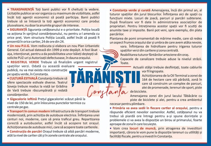 - Candidatul Alianței Național Țărăniste propune alegătorilor constănțeni un program electoral bazat pe curățenie, amenajarea de spații verzi și reabilitarea celor existente și o gigacalorie mai ieftină pentru sezonul rece