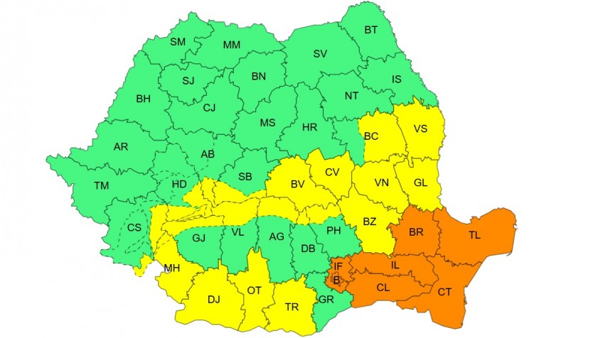 Administrația Națională de Meteorologie a emis un cod portocaliu de ninsoare, cu strat consistent de zăpadă, intensificări puternice ale vântului și viscol pentru județele Călărași, Ialomița, Brăila, Tulcea și Constanța.