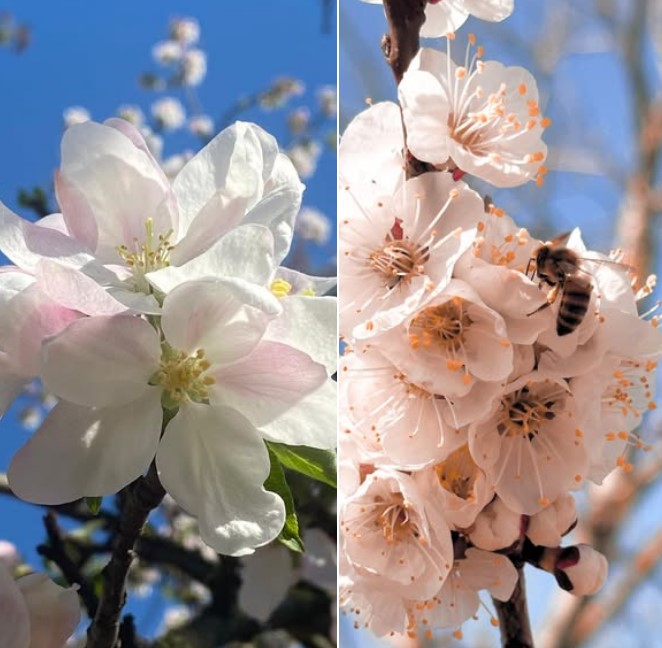 Mergând printre case, am putut observa magnolii înfloriți în aproape toate curțile. Sunt explozii de roz, mov, lila și alte nuanțe, ce contrastează cu lipsa frunzelor. La fel sunt și corcodușii înfloriți, împodobiți precum miresele în alb și împrăștiind arome amețitoare.