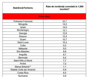 A fost actualizată lista țărilor cu risc epidemiologic ridicat