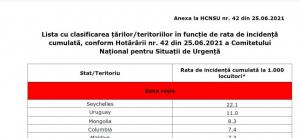-în zona roșie au intrat: Slovacia, Insulele Feroe, Singapore și Leshoto;
