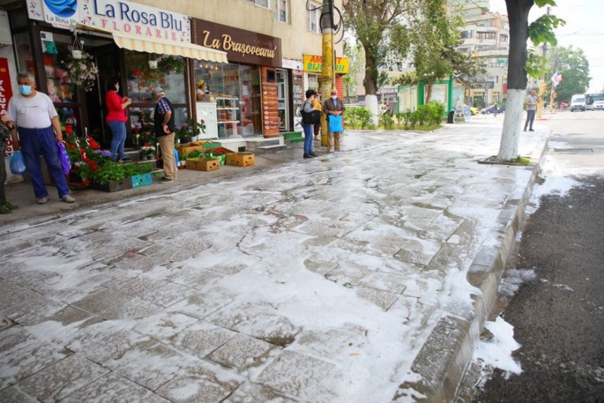 - Pentru dezinfecție se folosește un detergent profesional care are proprietăți de spalare și degresare puternică a străzilor fără a afecta mediul înconjurător.