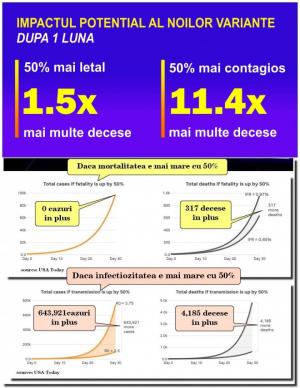 În primul rând, avem egalat recordul din valul 4 - Delta pentru cea mai mare creștere săptămânală a numărului de cazuri (88% în săptămână S38, 1.319 septembrie). Diferența este că acest record este înregistrat la debutul valului 5, în vreme ce la debutul valului 4 am avut o creștere de 40%.