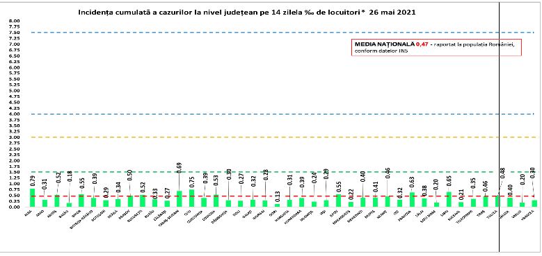 - În intervalul 25.05.2021 (10:00) – 26.05.2021 (10:00) au fost raportate 52 de decese (24 bărbați și 28 femei), ale unor pacienți infectați cu noul coronavirus, internați în spitalele din Alba, Arad, Bacău, Bihor, Caraș-Severin, Cluj, Constanța, Covasna, Hunedoara, Mureș, Neamț, Olt, Prahova, Sibiu, Teleorman, Timiș, Tulcea, Vrancea, Ilfov și Municipiul București.