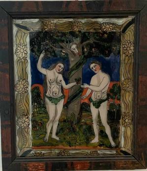 Doar două zile îi mai despart pe creștinii ortodocși de Postul Paștelui, pe parcursul căruia se vor pregăti ca să cinstească așa cum se cuvine cel mai mare praznic al creștinătății, Învierea Domnului. De aceea, pe 18 februarie, în duminica Izgonirii lui Adam din Rai, când se lasă sec de brânză, se rememorează momentul în care cei dintâi oameni, Adam și Eva, s-au făcut vinovați de neascultare și nepostire, mâncând din fructele Pomului Cunoașterii. Momentul în care cuplul primordial încalcă porunca divină este o temă predilectă în iconografie. Aceasta i-a atras și pe iconarii transilvăneni, care au pictat pe sticlă faimoasa scenă biblică din Vechiul Testament.