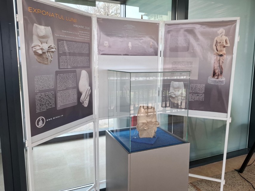 Exponatul lunii ianuarie este un fragment de statuetă feminină din marmură, descoperit în municipiul Constanța, ce poate fi admirat în perioada 15 ianuarie – 15 februarie 2026.