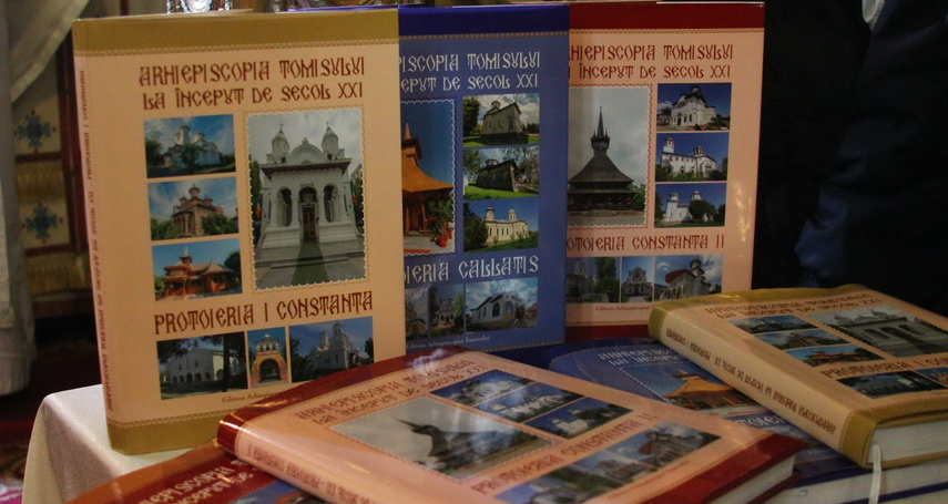 Ieri, de sfânta Duminică a Floriilor, la Catedrala Arhiepiscopală a avut loc lansarea monografiilor bisericilor din cuprinsul a trei dintre protoieriile eparhiei. Este vorba despre trei albume care cuprind monografiile aşezămintelor ecleziale din: „Protoieria I Constanţa“, „Protoieria Constanţa II“ şi „Protoieria Callatis“. Volumele conţin istoricul bisericilor, date biografice ale preoţilor slujitori, fotografiile lăcaşurilor de cult şi ale preoţilor slujitori. Cele trei albume au fost realizate de către arhid. conf. univ. dr. Bogdan Florin Chiriluţă, consilier cultural în cadrul Arhiepiscopiei Tomisului, Ionuţ Druche, directorul Editurii Arhiepiscopiei Tomisului, Georgeta Stan şi Valentin Vădănoiu.