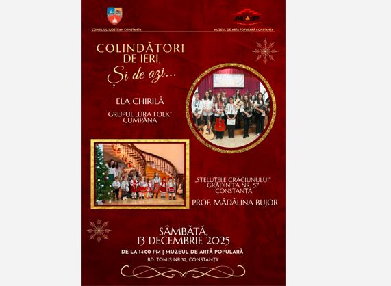 Muzeul de Artă Populară Constanța organizează sâmbătă, 13 decembrie, de la ora 14.00, concertul „Colindători de ieri. Și de azi…”.