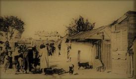 Spre zări, cerul are culoarea unei petale proaspete de trandafir... Marea. bordeie acoperite cu stuf și mărăcini se înșiruiesc laolaltă cu clădiri prin ale căror ferestre înalte pătrunde puternic lumina. Femeile stau la sfat în fața locuințelor; țin în brațe copii-păpuși, cu ochii clari, în care nici pe departe nu poți întrezări chipul închis, cioplit parcă în piatră al bărbatului sau al femeii.