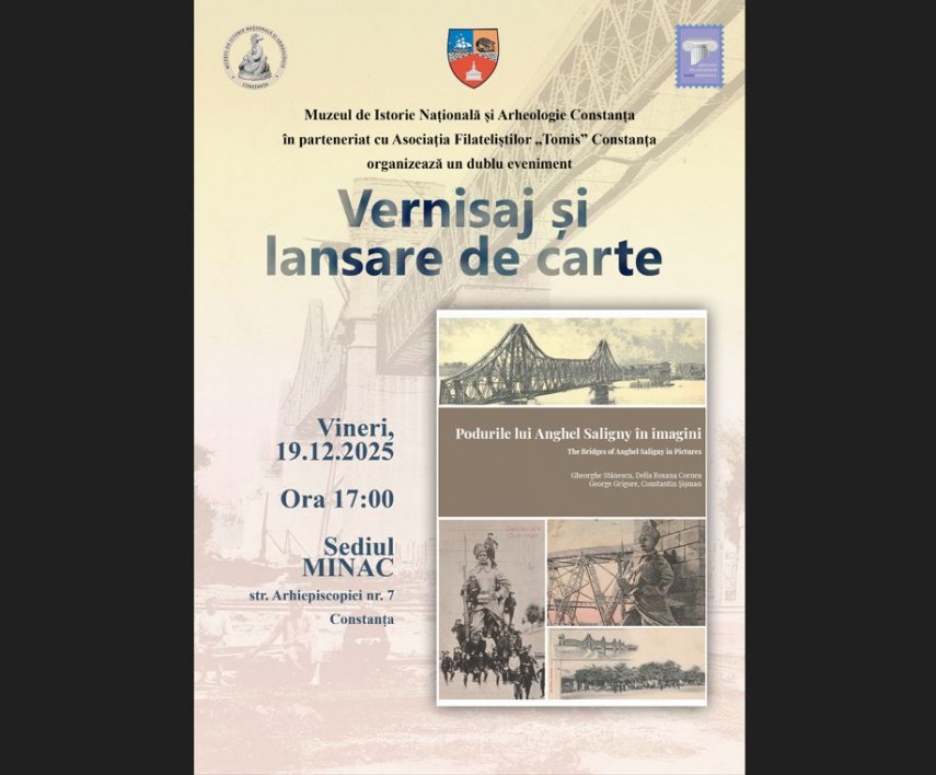 Muzeul de Istorie Națională și Arheologie Constanța împreună cu Asociația Filateliștilor „Tomis” Constanța organizează vineri, 19 decembrie 2025, începând cu ora 17:00, la sediul din strada Arhiepiscopiei numărul 7, un eveniment cultural dedicat împlinirii a 130 de ani de la inaugurarea Podului peste Dunăre de la Cernavodă.