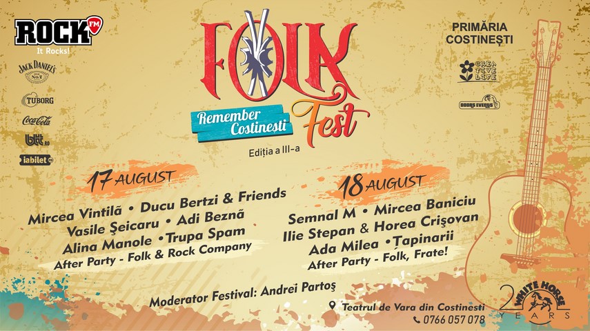Cea de-a treia ediţie a Folk Fest Remember Costineşti se desfăşoară în zilele de 17 şi 18 august 2019, la Teatrul de Vară din staţiune. Vor urca pe scenă: Mircea Vintilă, Ducu Bertzi & Friends, Vasile Șeicaru, Adi Beznă, Alina Manole, Trupa Spam, After Party: Folk & Rock Company (17 august); Semnal M, Mircea Baniciu, Ada Milea, Ilie Stepan & Horea Crişovan, Țapinarii, After Party: Folk Frate! (18 august).