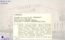 În această seară de marți, de la ora 19.00, Florina Cercel, Carmen Tănase și Virginia Rogin vă așteaptă la Casa de Cultură a Sindicatelor din Constanța, pentru a le urmări în tragicomedia „Gaițele“, de Alexandru Kirițescu.