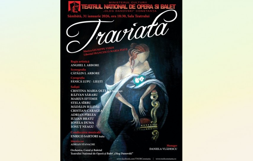 Teatrul Național de Operă și Balet „Oleg Danovski” din Constanța invită publicul la o seară de excepție sâmbătă, 31 ianuarie 2026, începând cu ora 18:30. Spectacolul programat este celebra operă „La Traviata”, de Giuseppe Verdi, pe un libret de Francesco Maria Piave.