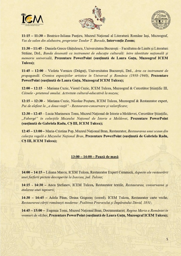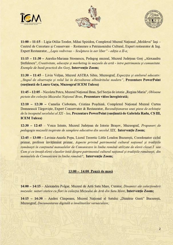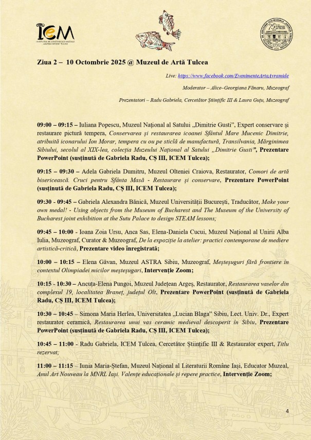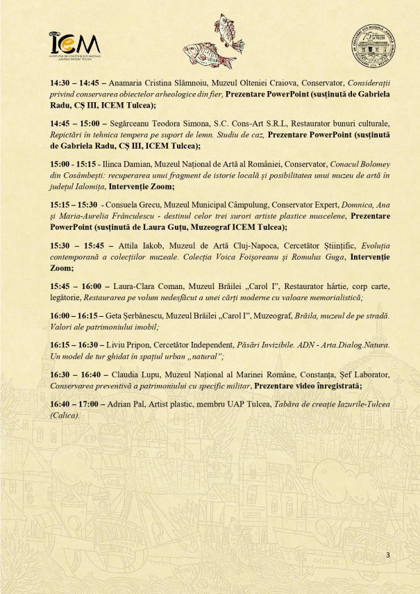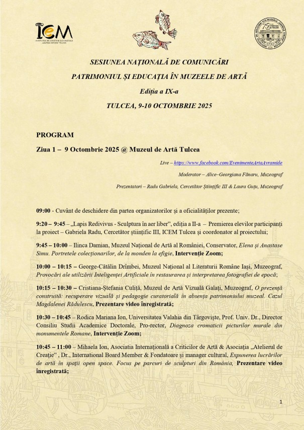 Sesiunea Națională de Comunicări „Patrimoniul și Educația în Muzeele de Artă”, la Muzeul de Artă Tulcea.