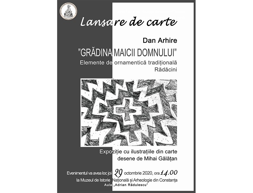 Astăzi, 29 octombrie 2020, de la ora 14, în Aula „Adrian Rădulescu”, a Muzeului de Istorie Națională și Arheologie Constanța, este programată lansarea de carte a omului de cultură tulcean Dan Arhire - „Grădina Maicii Domnului. Elemente de ornamentică tradițională. Rădăcini”.
