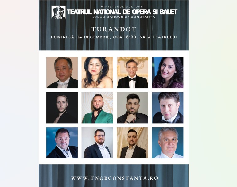 Duminică, 14 decembrie 2025, de la ora 18:30, iubitorii muzicii clasice din Constanța sunt invitați la un spectacol grandios: revenirea operei „Turandot” de Giacomo Puccini pe scena Teatrului Național de Operă și Balet „Oleg Danovski”.